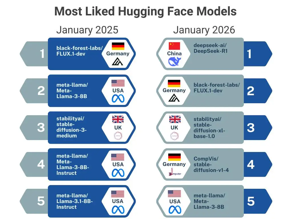 过去一年,百度、阿里巴巴、腾讯等巨头及月之暗面等初创公司大幅增加开源投入,中国模型在Hugging Face上的下载量已超越美国。尽管西方寻求替代方案,但全球众多初创企业和研究人员正逐渐依赖中国开发的开源模型作为基础,中国AI已深度嵌入全球供应链。