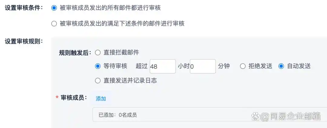 1、全员开启网易企业邮箱“发信审核”“异常行为预警”功能,管理员自定义预警规则(重点监测批量删信、异常登录发信),一旦OpenClaw出现失控操作,可第一时间拦截、止损。